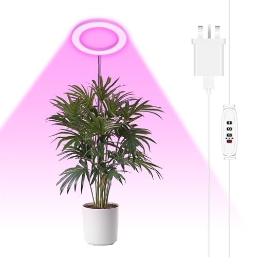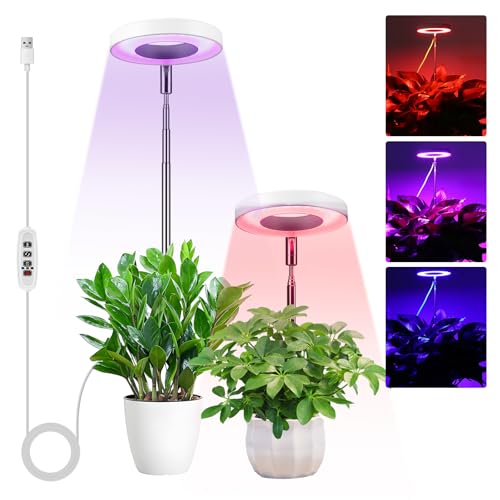 Willpower LED Grow Lights for Indoor Plants Full Spectrum Growing Lamps, Auto Timer 3/9/12H, 10 Dimmable Levels, Height Adjustable for Large Plants, Diameter 6.3\" Halo |